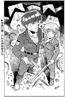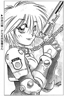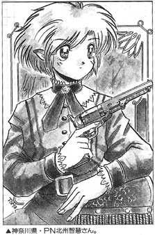 | クラブブレッド主宰の早撃ち大会に参加。相変わらずタイムは散々な上持参のピーメがイカレてしまった。ビームライフルは本当に持参して洒落で早撃ちしようとしたが雰囲気がそれ所ではなかった(笑) | これもシチュ不明なイラストながら結構お気にな1枚。ハードボイルドな作品が描きたいのだが腕がついて行ってない(泣) |
