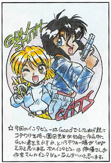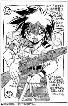 | これは読者コーナーでなくクラブブレットのページに載っちゃった奴。園田先生のサインが欲しくて描いたのだが、結局貰えず葉書が晒された(笑)晒されるんだったらもっといろ塗りちゃんとやってたよ(泣) | ホンとASGに関してはマルイの南部十四年式位しかないことに憂いた葉書。現在KTWで出ている長物は本当にうれしい。(でも高い) ○二式テラ銃・日野小室式 |
