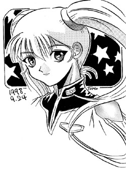 北州らしくアニメネタを。映画版「機動戦艦ナデシコ」の「電子の妖精」ホシノルリ艦長。コンバットコミック読者会報かなにかで描いた気が…。テレビ版も良いけど個人的には映画版のルリが好き(照)