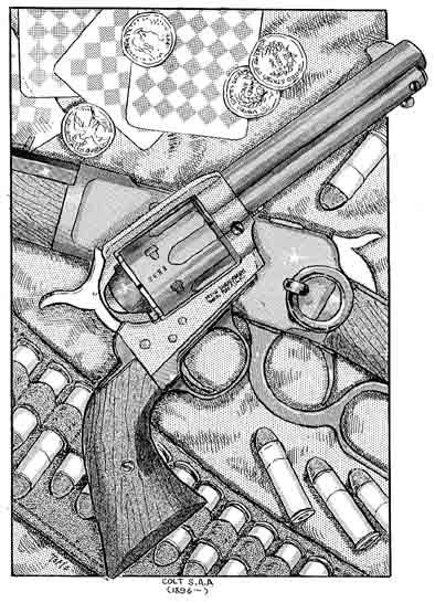 コルトSAAとウインチェスターM1892。トップ絵に使っていたが何か不評。個人的にはこういうのは描いていて楽しい。