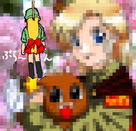 元相方さんのHPに送ったCGでしろうとの持ちキャラのヘルガと元さんのキャラソビィ君。実は元さんのところとは微妙に変えていた。(やっぱり差し上げるイラストにハングマン(ガール・笑)は如何なものかと) ヘルガはキャラ的にはアシスト付きながらドイツ魔法少女3人を相手にする力を有す。性格は生意気な性格。鮮明な画像をご所望な方は元相方さんのHPへGO!!