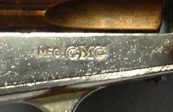 フレームに有るCMCのロゴ。1991年冬、初めてトイガンを買う北州にCMCの店員さんは丁寧に実銃の歴史から、銃の簡単な(また重要な)扱い方とマナーを説明してくれた(感謝!) しかし数ヶ月後そのCMCがトイガンの扱いを止めてしまったときはショックだった。 |