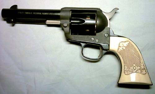 CMC消滅以後、長らくプラスチックSAAが市場から消えて久しかったが、モデルガンマニアの間では「ハートフォードがCMCのモデルガンの金型の幾つかを引き取った」という情報がまことしやかに流れた。それに呼応するように1994年に組み立てキットという形でハートフォードがCMCSAAを復活させた。しかし唯復活させたわけで無く、ビジュアル的にCMCの弱点部分を改修するなど涙ぐましい努力が伺える。写真は初期組み立てモデル。初期はオールABS仕様だった。 |