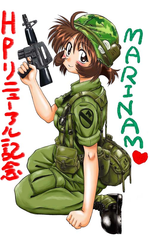 くう〜!!効くな〜これ!さをさんよりHPリニューアル記念の画像を頂きました(いえ、もっと早くに頂いていたんですが・・・)髪の毛に跳ねが装備されているので「マリオネットカンパニー」の「マリさん」ですね。むっちゃプリティでキュアキュアです!!(照)自分も以前に落書きで描いた事があるんですがやっぱり分かっている方が描かれるNAM装備の方が何万倍もカッコよく説得力があります。またミニ電動ガンのM16もちょ〜萌え萌えっす!どうもありがとうございました!!
