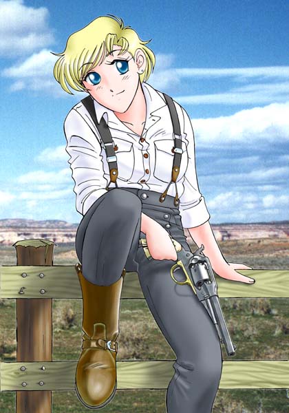 | ファンタスティック!!Picklesさんから素晴らしいイラストを頂きました!レミントンリボルバーを持ったウエスタン少女!雰囲気が素敵ですね!銃のバランスも大きさ、表面処理も素晴らしい!是非とも見習いたいものです。どうもありがとうございました! |