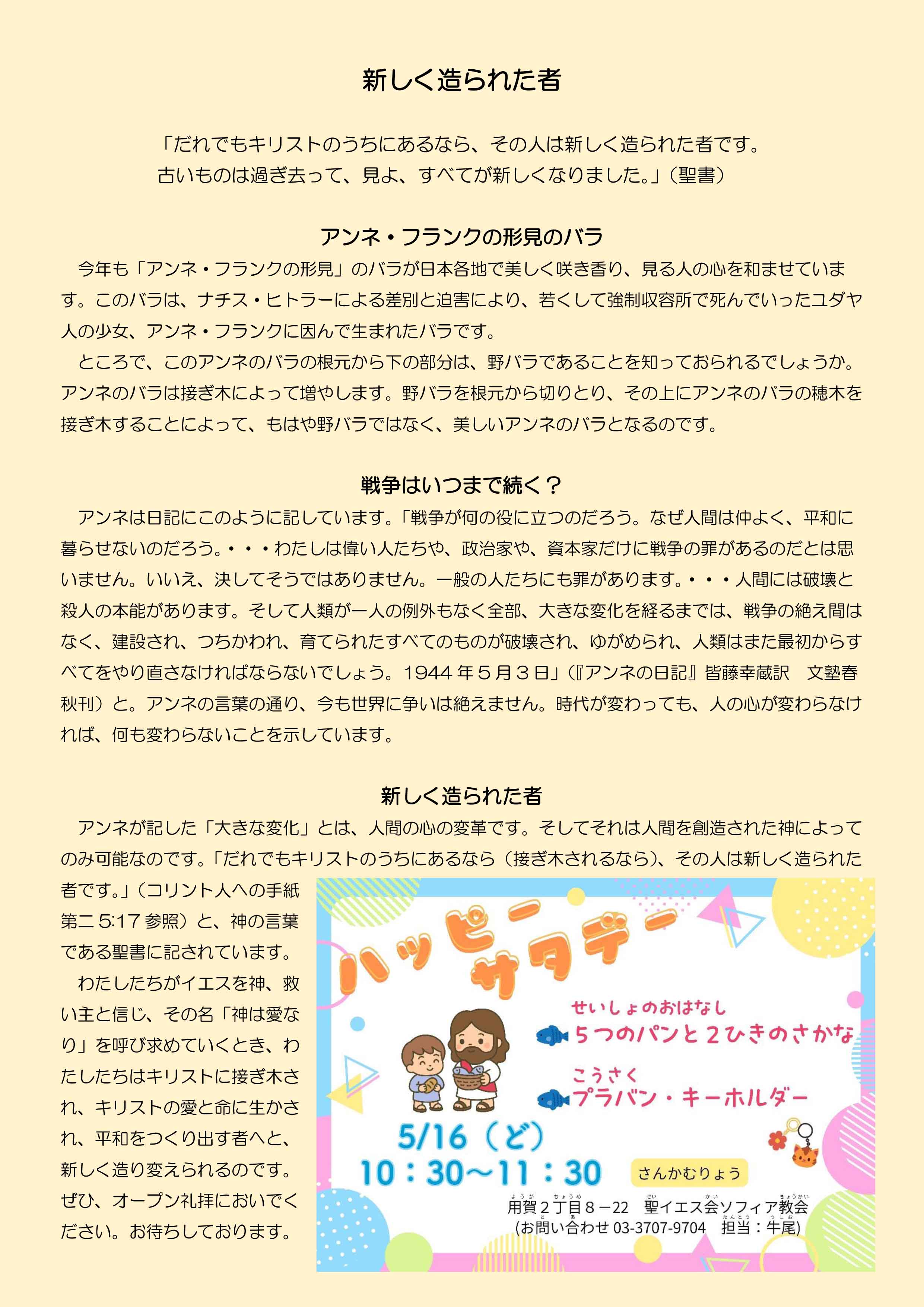 ☆5月のオープン礼拝のご案内